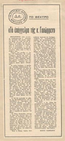 "Το επάγγελμα της κ. Ουώρρεν" του Μπέρναρ Σω (εις το Εθνικόν)