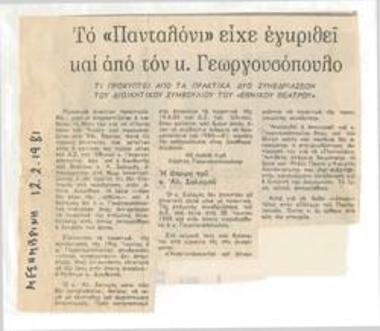 "The Trousers" was also approved by Mr. Kostas Georgousopoulos. It emerges from the minutes of two meetings of the Board of Directors of the National Theatre