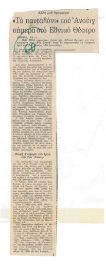 Alexis Solomos: "They are interested in the shadow and not the donkey ...". The reactions around staging Anouilh 's recent play "The Trousers" from the State Stage