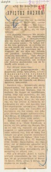 Πρόγραμμα για την παράσταση "Χριστός πάσχων" (1964)