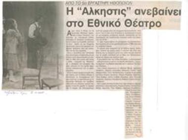 An alternative "Alcestis". An "Alcestis" different from the others is directed by Lydia Koniordou at the National Theatre