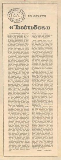 Πρόγραμμα για την παράσταση "Ικέτιδες" (1966)