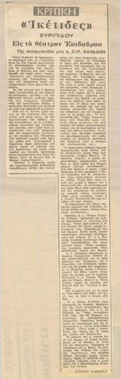 Επιδαύρια 1966. Αι "Ικέτιδες" του Ευριπίδου (Εθνικόν Θέατρον)