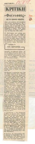 Πρόγραμμα για την παράσταση "Φοίνισσες" (1978)