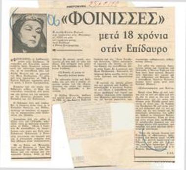 Επίδαυρος, Εθνικό Θέατρο. "Φοίνισσες" του Ευριπίδη, μετ. Γερ. Σπαταλά, σκηνοθ. Αλ. Μινωτή