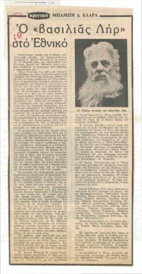 Oedipus and Lear, analysis by Alexis Minotis, protagonist and director of the play. On the occasion of yesterday's opening of "King Lear" at the National Theatre