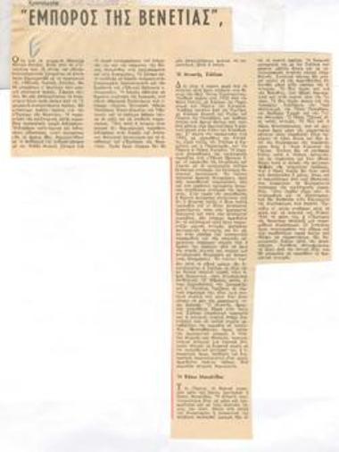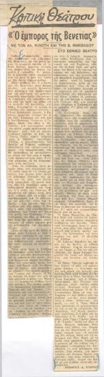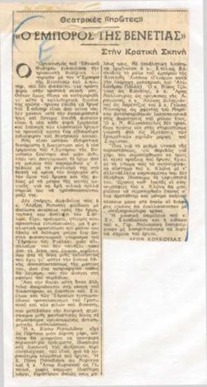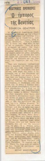Πρόγραμμα για την παράσταση "Ο έμπορος της Βενετίας" (1960)