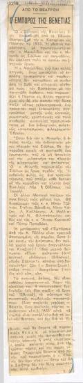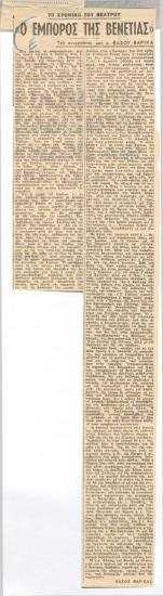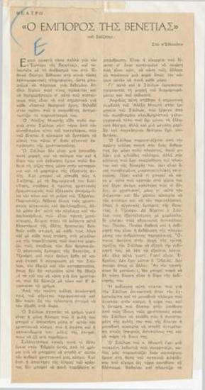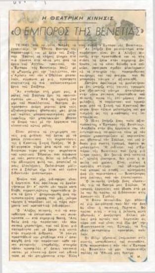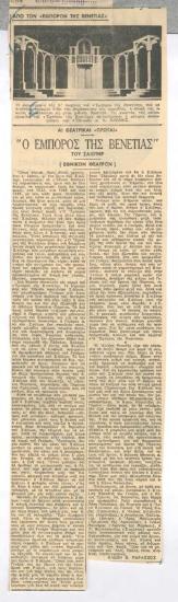 Σαίξπηρ "Ο έμπορος της Βενετίας", εις το Βασιλικόν Θέατρον