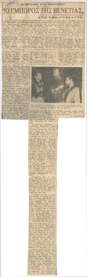 "Ο έμπορος της Βενετίας", Εθνικόν Θέατρον