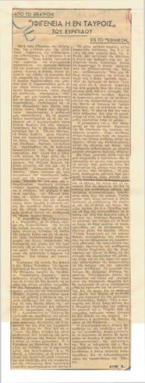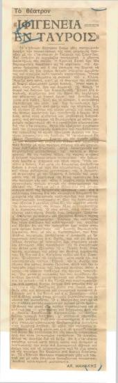 Opening of the winter season. National Theatre, Euripides' "Iphigenia in Tauris"