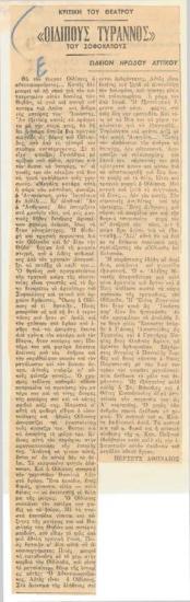 Πρόγραμμα για την παράσταση "Οιδίπους τύραννος" (1958)