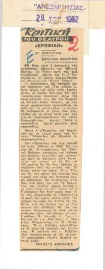 "Ερωφίλη" (Γ. Χορτάτση), Εθνικόν Θέατρον