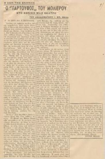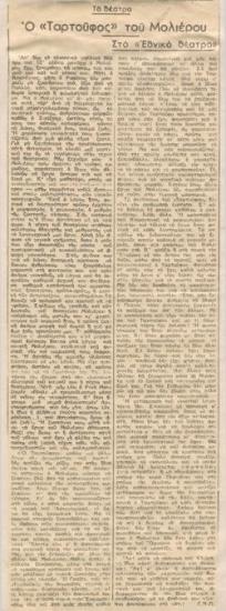 Το δραματικόν θέατρον. "Ο ταρτούφος", κωμωδία του Μολιέρου από τον κρατικόν δραματικόν θίασον εις το Εθνικόν Θέατρον