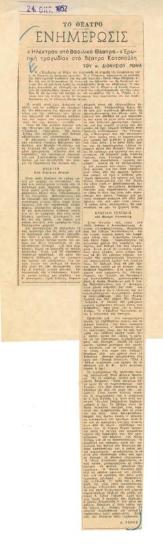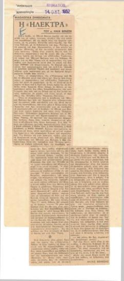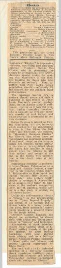 "Electra" at the National Theatre (with Mrs. Katina Paxinou as the heroine)