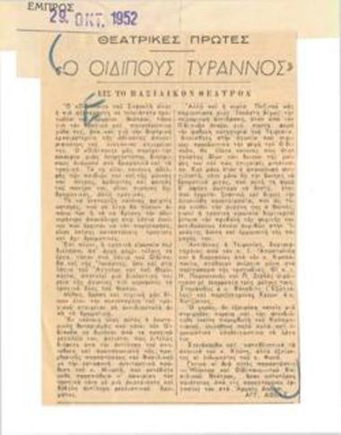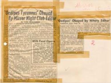 "Oedipus Tyrannus" okayed by "Mirror" night club editor