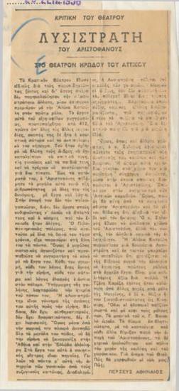 Το αρχαίο θέατρο. Αριστοφάνους "Λυσιστράτη", στο Ωδείον Ηρώδου