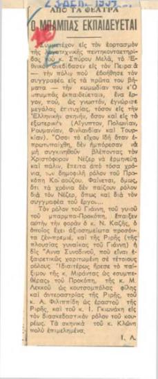 Σπύρου Μελά "Ο μπαμπάς εκπαιδεύεται", εις το Δημοτικόν Θέατρον. Η χθεσινή "πρώτη"