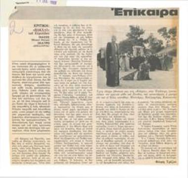 Γύρω από την έναρξι των Επιδαυρίων. Πλάτος και τελετουργικότης στην παράστασι των "Βακχών". Απόψεις Γ. Βακαλό και Α. Ευαγγελίδη