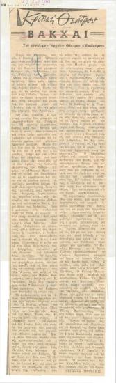 Πρεμιέρα των Επιδαυρίων '69. Εξαιρετική επιτυχία εσημείωσαν αι "Βάκχαι"