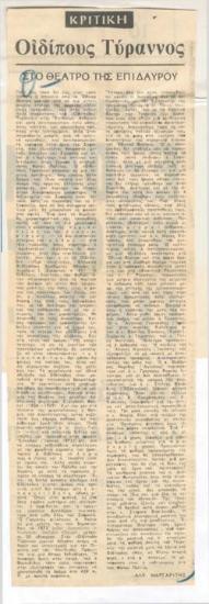 Επιδαύρια 1973. "Οιδίπους Τύραννος" - "Ιππόλυτος"