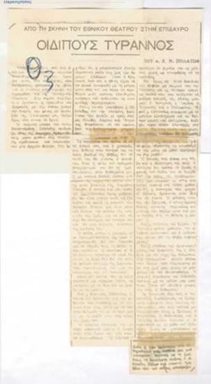 Γύρω από τα Επιδαύρια. "Οιδίπους Τύραννος", μοτίβα και στοχασμοί