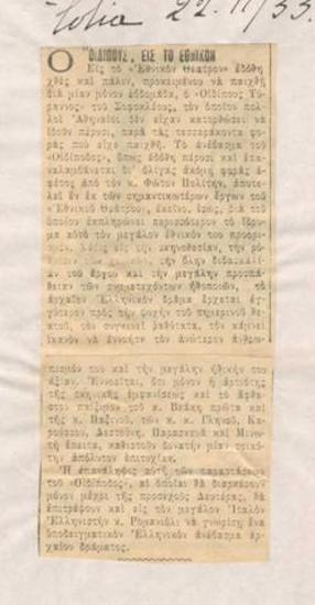 The opening of the National Theatre. "Oedipus the King". The spectator's impressions