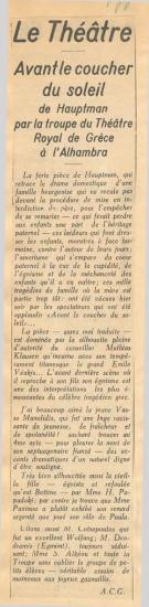 "Avant le coucher du soleil" de Hauptmann par la troupe du Théâtre Royal de Grèce à l'Alhambra