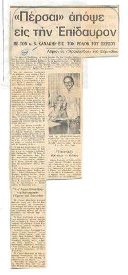 "The Persians" in Epidaurus tonight with Mr. V. Kanakis in the role of Xerxes. Tomorrow Euripides' "Heracleidae".