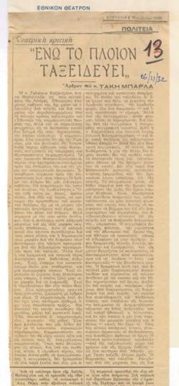 "Ενώ το πλοίο ταξειδεύει". Εθνικόν Θέατρον.