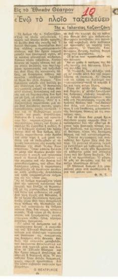 "Ενώ το πλοίο ταξειδεύει" (της κ. Γαλάτειας Καζαντζάκη). Εθνικόν Θέατρον