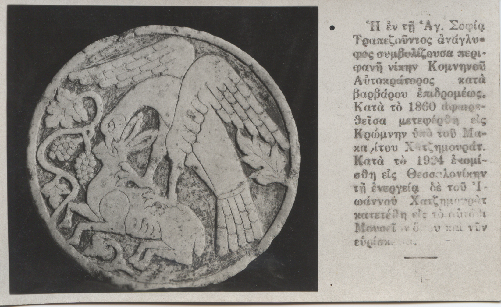 Γλυπτή εικόνα αετού που αιχμαλωτίζει ένα λαγό, φιλοτεχνήθηκε στην Αγία Σοφία Τραπεζούντας για την νίκη του αυτοκράτορα Κομνηνού