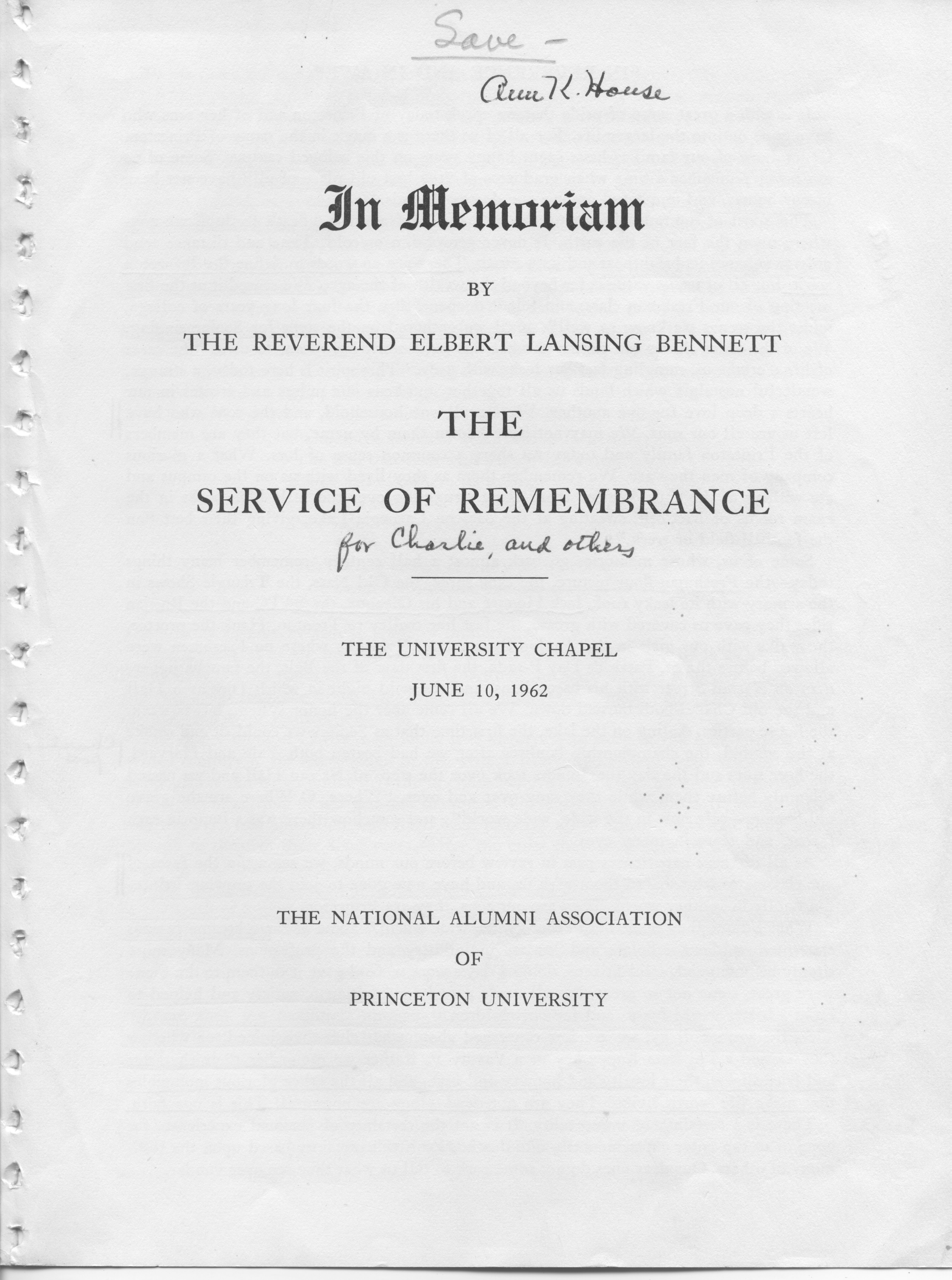 Τελετή μνημόσυνου του Charles Lucius House στο πανεπιστήμιο του Princeton (σ.2), 22, 10 Ιουνίου, 1962