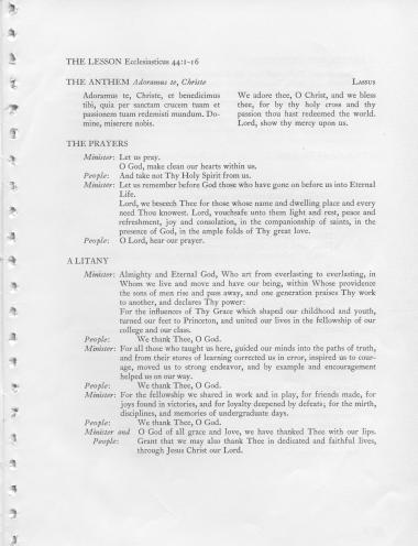 Scrapbook memorial service of rememberance of Princeton University for their alumni (p.5) June 10, 1962