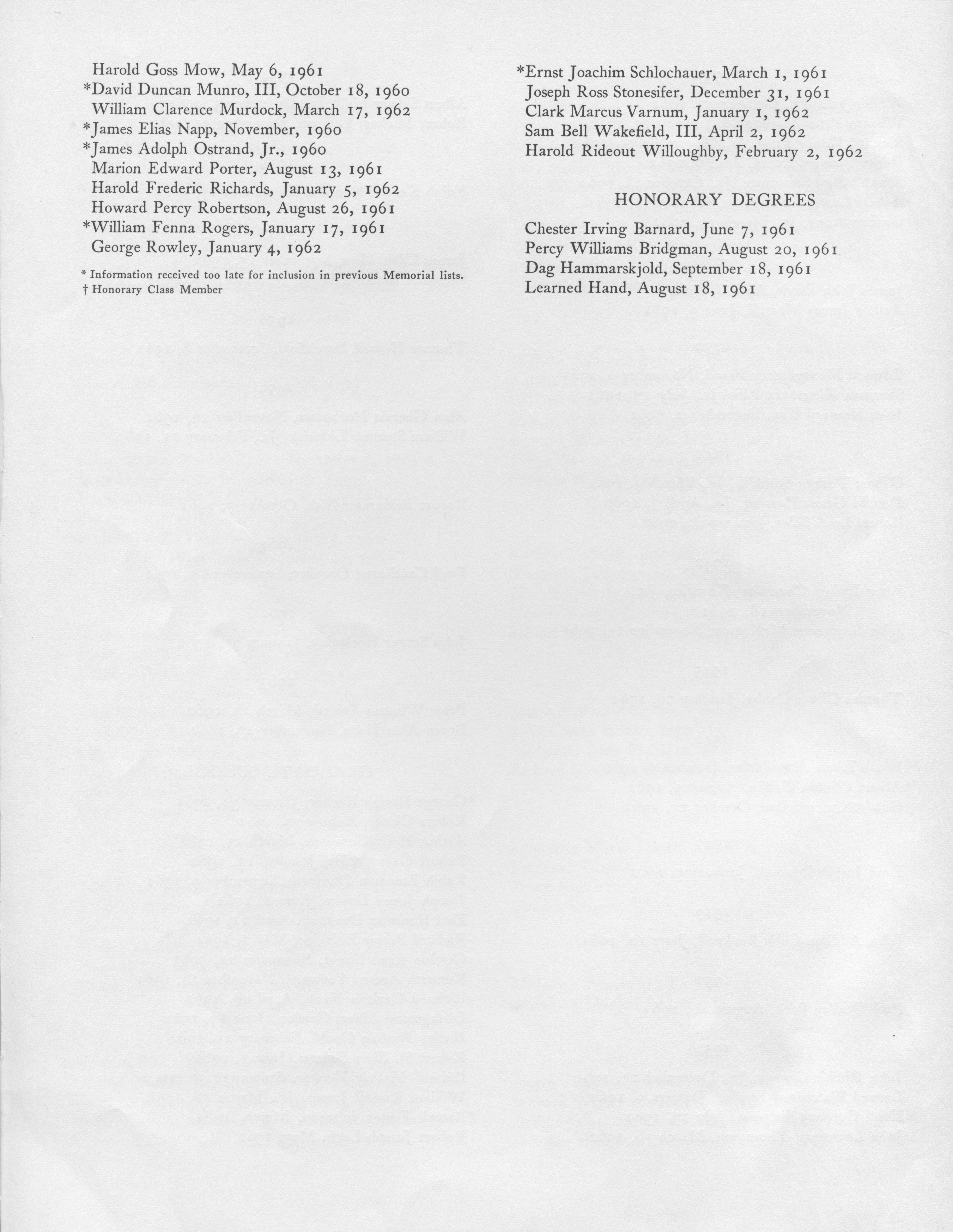 Scrapbook memorial service of rememberance of Princeton University for their alumni (p.12) June 10, 1962