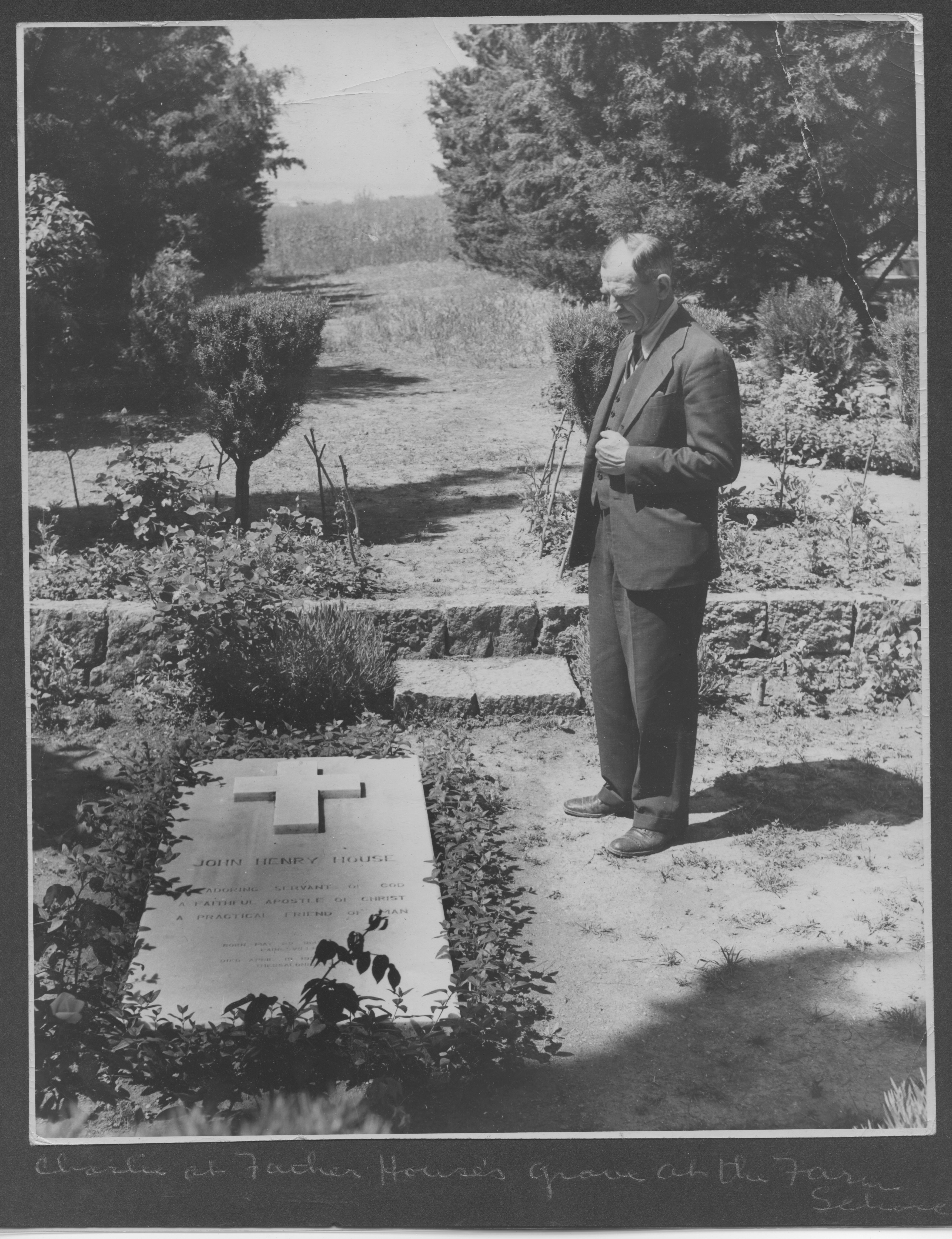 Charles Lucius House μπροστά στον τάφο του πατέρα του στην σχολή, Ο : φωτογραφία από το λεύκωμα, 8