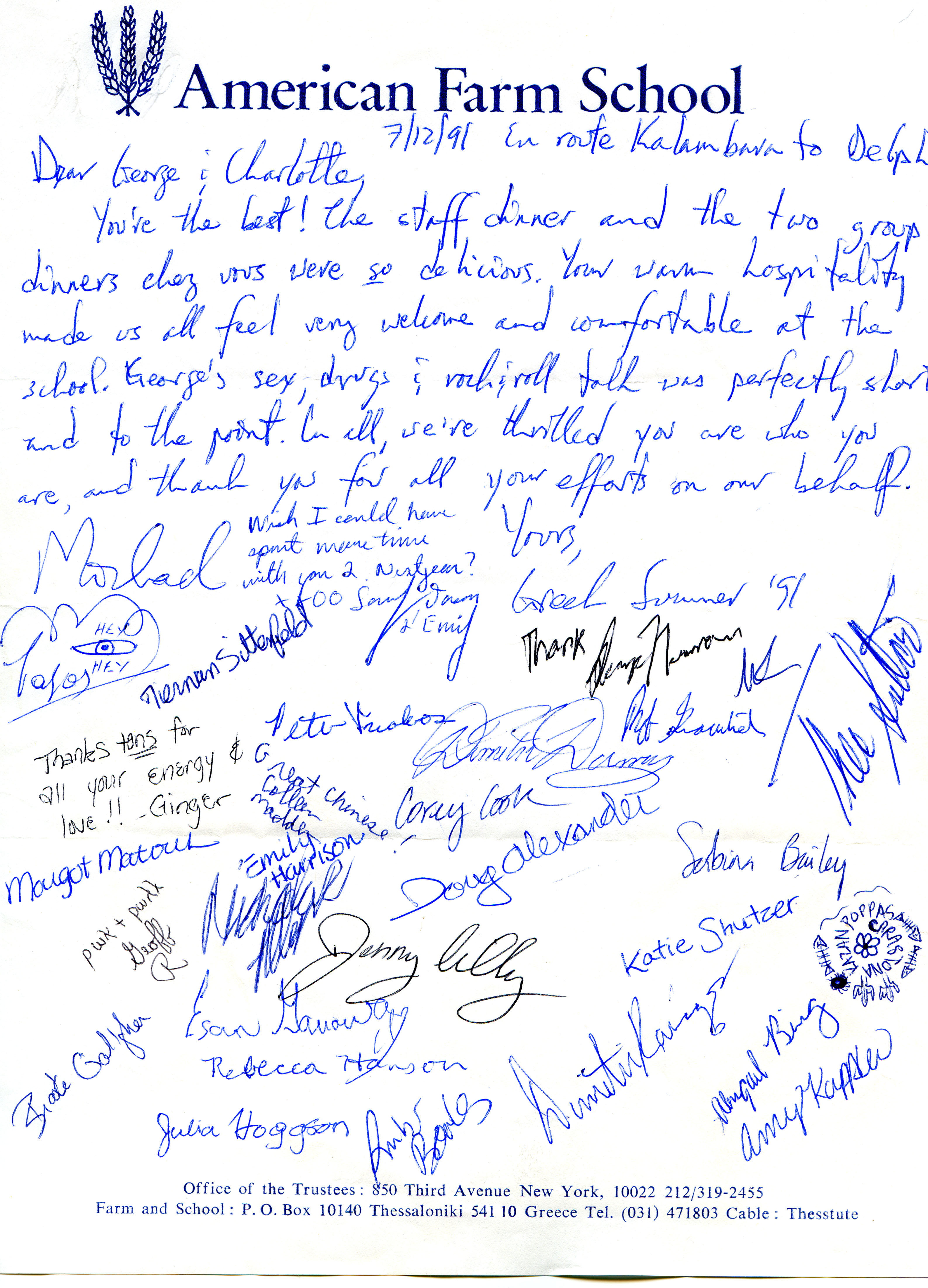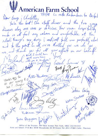 Ευχαριστήριο γράμμα από το Greek Summer 1991 προς τον πρόεδρο George Draper