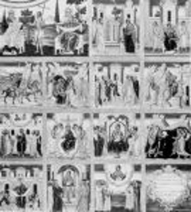 Επιτάφιος Θρήνος Ευαγγελιστές, Σταύρωση, Αποκαθήλωση, Ανάσταση (σχέδιο σε ύφασμα, λεπτομέρεια)