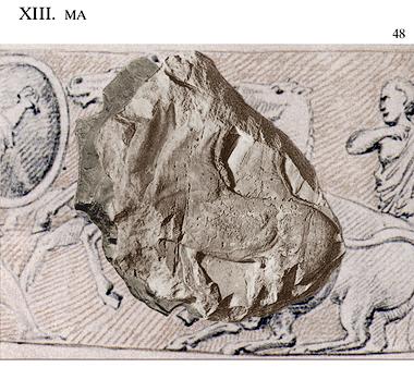 Στο αριστερό μέρος αυτού του λίθου πρέπει να υπήρχε σύμφωνα με την απεικόνιση του J. Carrey τμήμα της ασπίδας με το αριστερό χέρι του αποβάτη (47) του λίθου XII (αριστερά). Τα άλογα ενός άρματος που προφανώς εικονιζόταν στον λίθο XIV (δεξιά) αναπηδούν ψηλά, και ένας επόπτης (48) με ιμάτιο υψώνει το δεξί του χέρι δίνοντας κάποιο παράγγελμα. Παρά την κακή κατάσταση του λίθου μπορεί να συμπεράνει κανείς από το σχέδιο του J. Carrey, ότι τα άρματα πρέπει να βρίσκονται κοντά στο τέρμα.