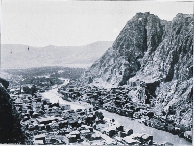 Πανοραμική άποψη της Αμάσειας από τα ανατολικά. Στα δεξιά, οι υπόσκαφοι Τάφοι των Βασιλέων.