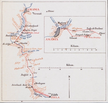 Χάρτης της περιοχής από την Αμάσεια έως το Ζίλε, Μικρά Ασία.