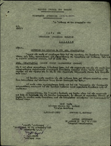 Επιστολή της Εμπορικής Τράπεζας της Ελλάδος προς τον Οργανισμό Ανελκύσεως Ναυαγίων με την οποία εγγυάται υπέρ του Ι. Α. Βουκάκη για το ποσό 120.000.000 δραχμών για τη συμμετοχή του στο διαγωνισμό εκποίησης του ναυαγίου ΜΑΡΙΟ ΡΟΖΕΛΛΙ.