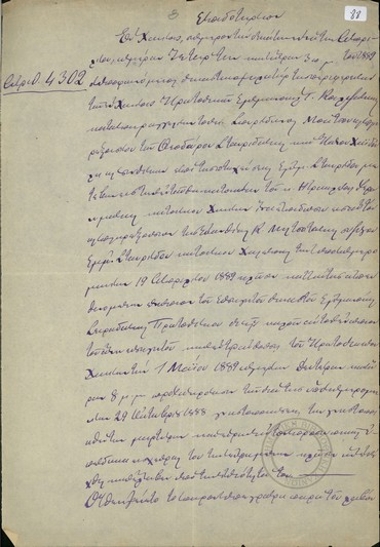 Επιδοτήριο αριθμ. 4302, κατά παραγγελία του Σπυρίδωνος Μοάτσου πληρεξουσίου των Θεοδώρου Σταυριδάκη και Πάνου Χαϊδούλη ως συνδίκων επί της πτωχεύσεως Εμμανουήλ Σταυρίδου, στον Ηρ. Ιερωνυμάκη πληρεξούσιο της Ευανθίας το γένος Μητσοτάκη συζύγου Εμμαν. Σταυρίδη, κλήσης γνωστοποίησης μαρτύρων στη δίκη μεταξύ αυτών και της Ευανθίας Κ. Μητσοτάκη συζύγου Εμμ. Σταυρίδη (αφορά οικονομική υπόθεση).