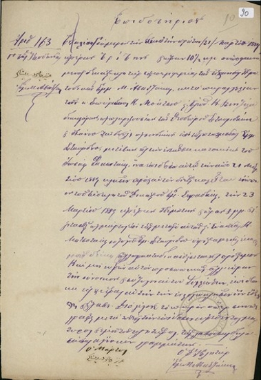 Επιδοτήριο αριθ. 163 κατά παραγγελία του Σπυρίδωνος Μοάτσου και Ελευθερίου Βενιζέλου δικηγόρων ως πληρεξουσίων των Θεοδώρου Σταυριδάκη και Πάνου Χαϊδούλη ως συνδίκων επί της πτωχεύσεως Εμμανουήλ Σταυρίδου, στον Ιωσήφ [Φακωτάκη] κλήσης ως μάρτυρας στη δίκη μεταξύ αυτών και της Ευανθίας Κ. Μητσοτάκη συζύγου Εμμ. Σταυρίδη (αφορά οικονομική υπόθεση του συζύγου της).