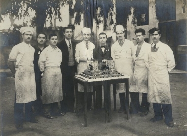"Το παρών γλικό εστάλη εις την ονομαστικήν εορτήν του μαγάλου μας αρχιγού Κ.Ε. Βενιζέλου από τους εμφανιζομένους Χανιά 15 Δεκ/ου 34"