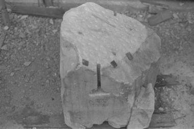 Ο λίθος 43 του νότιου τοίχου κατά την προετοιμασία συγκόλλησης