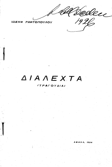 Διαλεχτά (Τραγούδια) / Ιωσήφ Ραφτοπούλου.