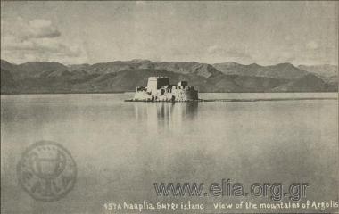 Nauplia. Burgi island view of the mountains of Argolis