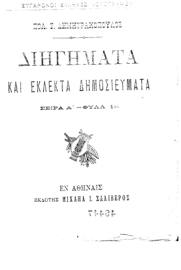 Dimitrakopoulos Polyvios Place of birth : Europe ▶ Greece ▶ Peloponnese District ▶ Messenia Kyparissía City/village/populated place Κυπαρισσία | Κυπαρισσία, Νομός Μεσσηνίας | Kyparissía, Messenia | Κυπαρισσία Μεσσηνίας Place of death : Europe ▶ Greece ▶ Attica District ▶ Nomarchía Athínas Athens Capital Αθήνα | Αθήναι