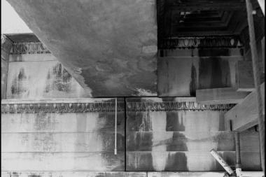 Η σιδηροδοκός ανάρτησης της δοκού 376 της οροφής της βόρειας πρόστασης κατά την αποσυναρμολόγηση
