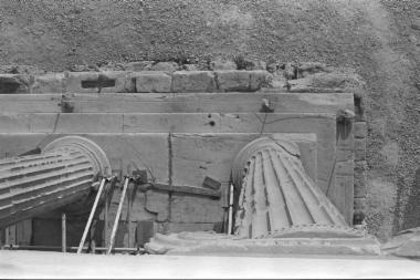 Οι λίθοι βαθμίδας της κρηπίδας της βόρειας πρόστασης